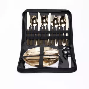 Набір посуду для пікніка на 4 персони 24 предмети, золото