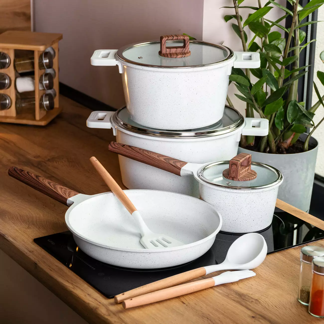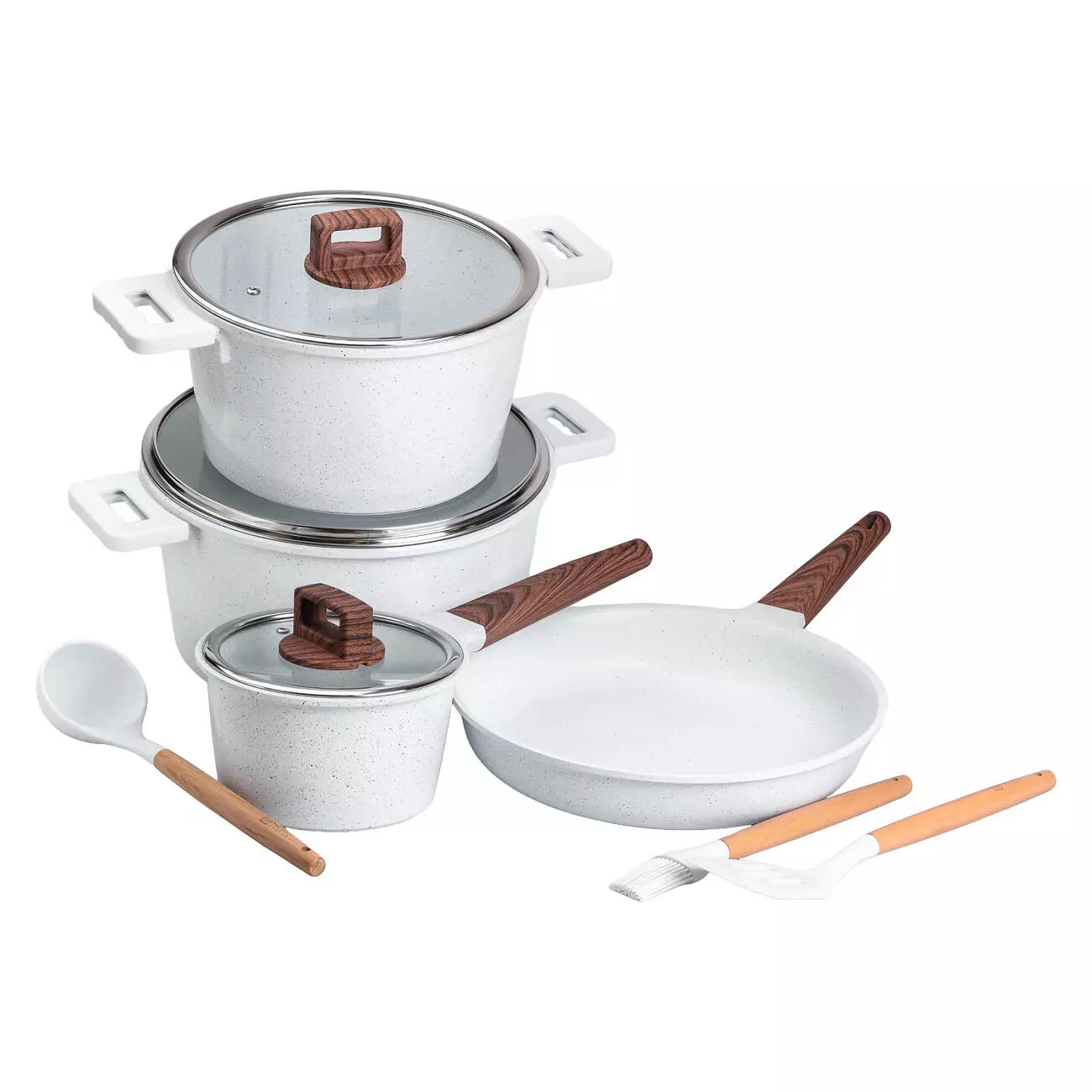 Набір посуду MGC 7 предметів з антипригарним покриттям 1,6/2/5,3/7 л, білий