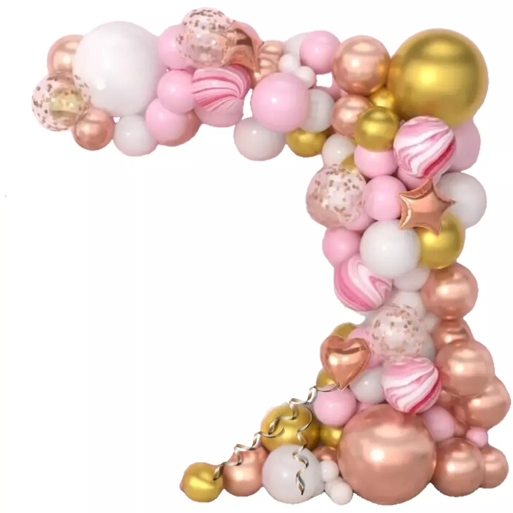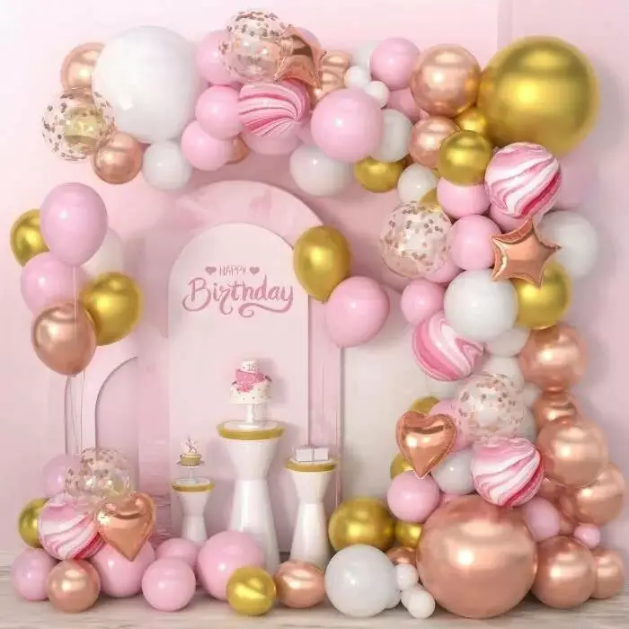 та рожевого золота кольорів, а також прозорі кулі з конфетті, які