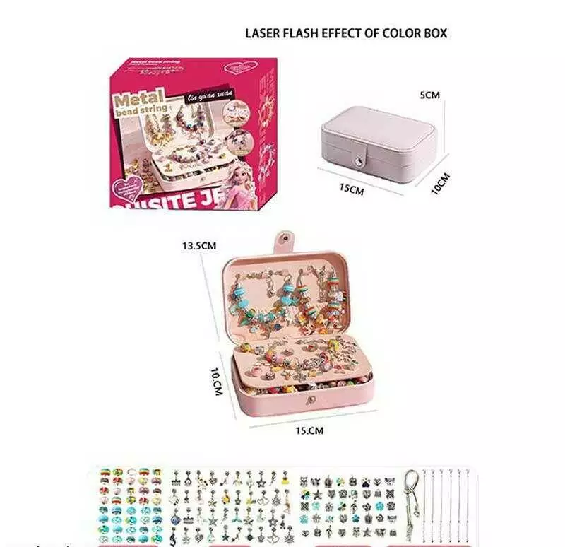 Набір прикрас 5568-1 C (36) 132 аксесуари, шарми, основи для браслетів, основи для намиста, скринька, в коробці