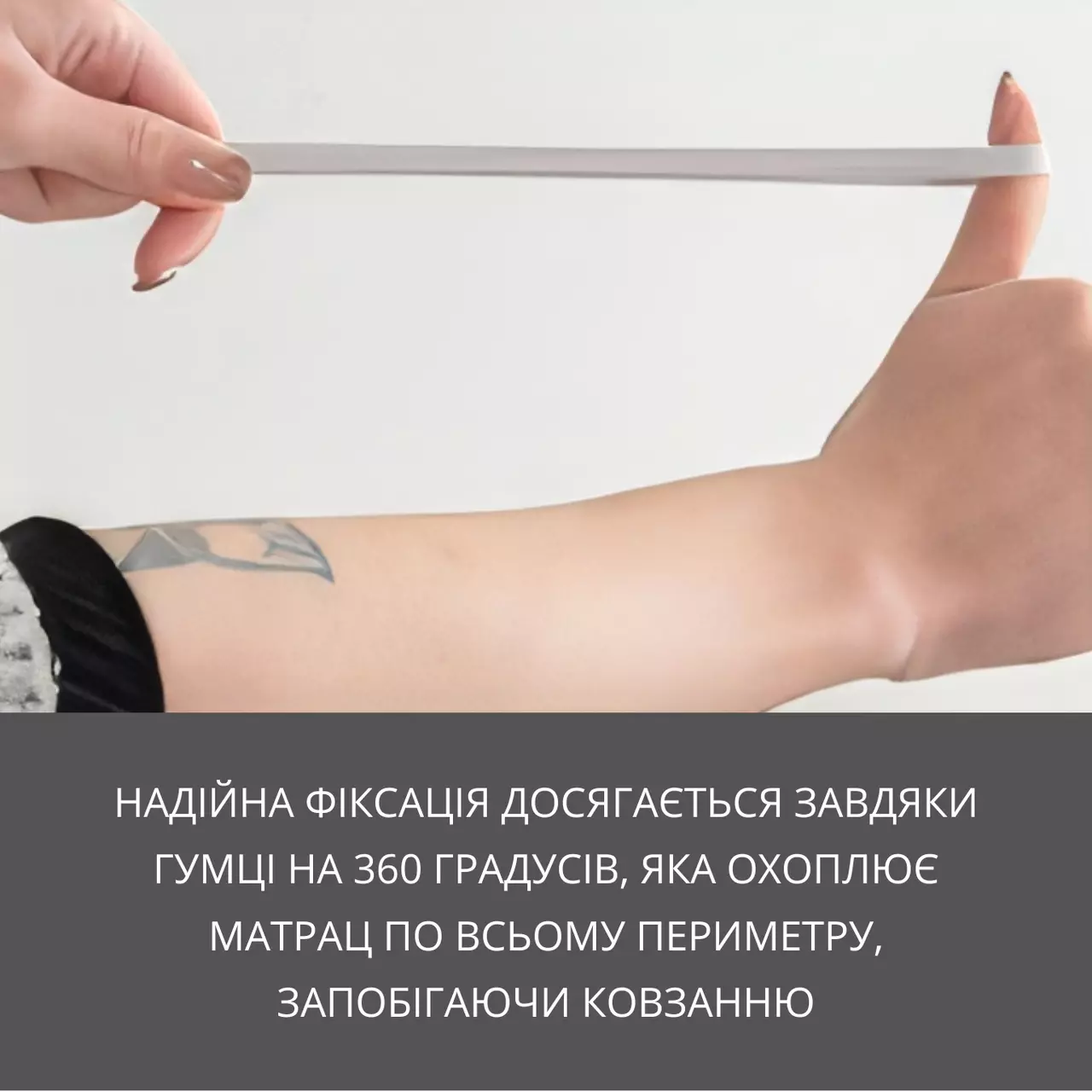 Гумка по всьому периметру щільно охоплює матрац, забезпечуючи