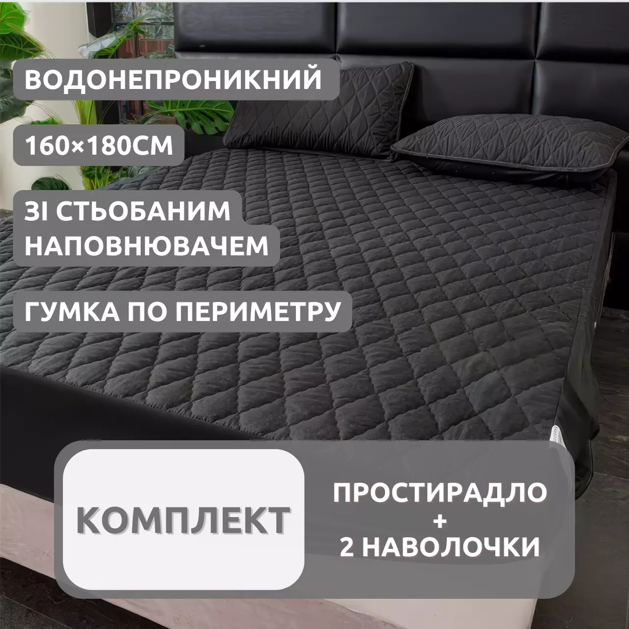 Простирадло водонепроникне 160×180 см з гумкою і двома наволочками