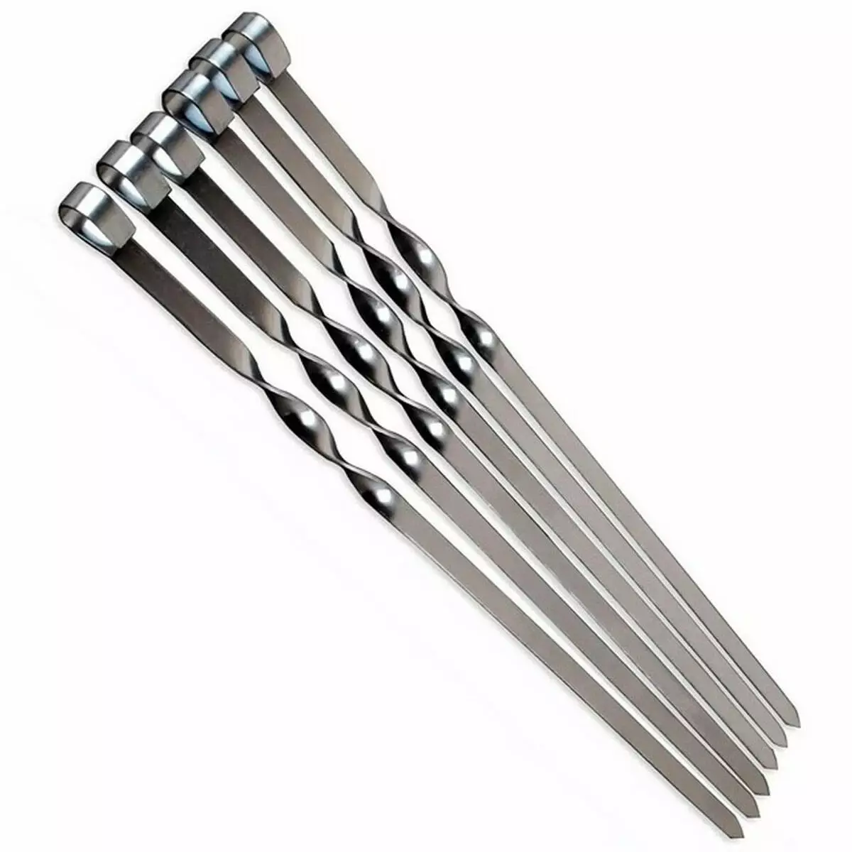 Шампури виготовлені з нержавіючої сталі, яка витримує високі температури та підходить для регулярного використання. Матеріал стійкий до вологи, не піддається корозії та зберігає форму під час експлуатації. Ширина 1 см забезпечує міцність конструкції та надійну фіксацію продуктів під час смаження.