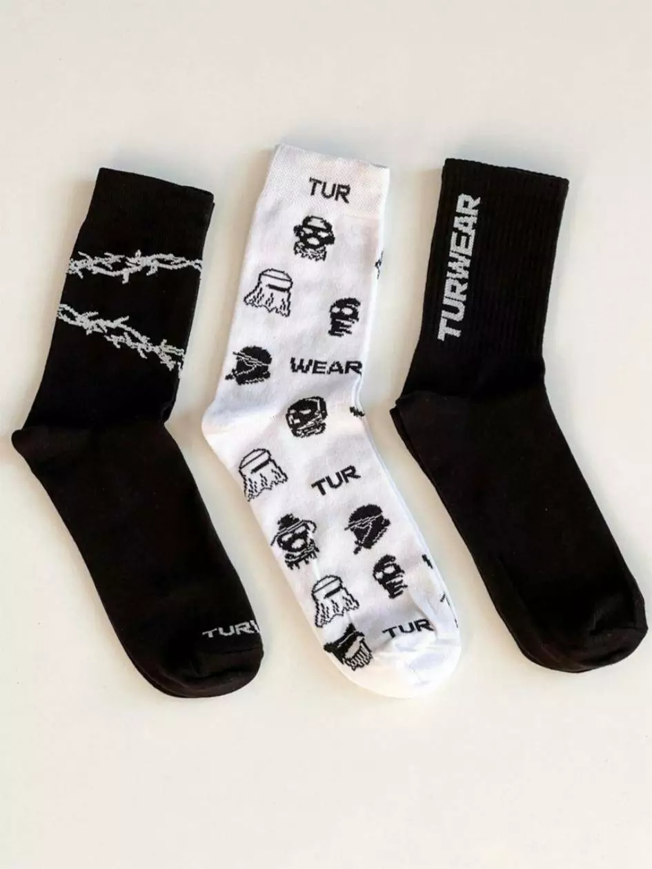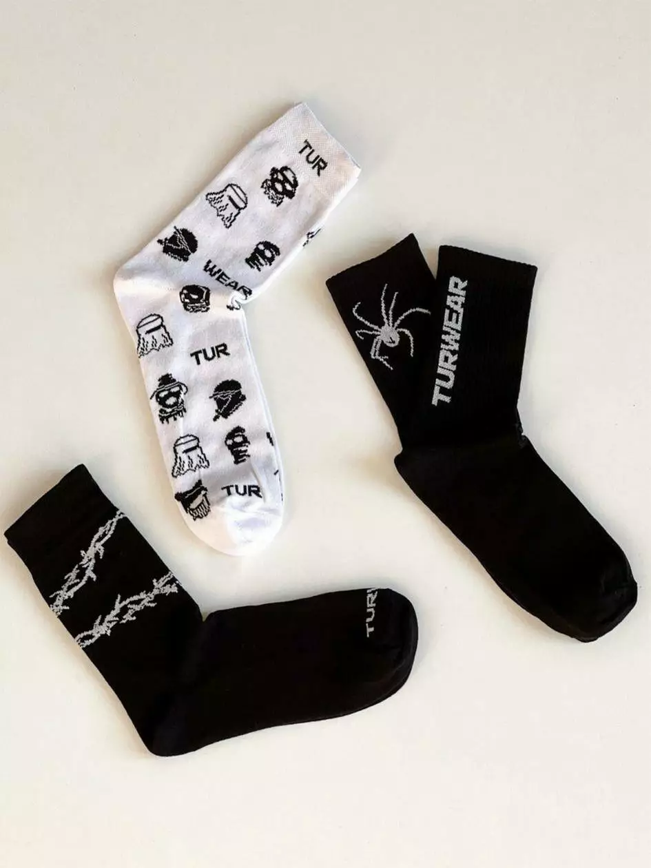 В наборі 3 пари шкарпеток: дві чорного кольору і одна білого (всі з