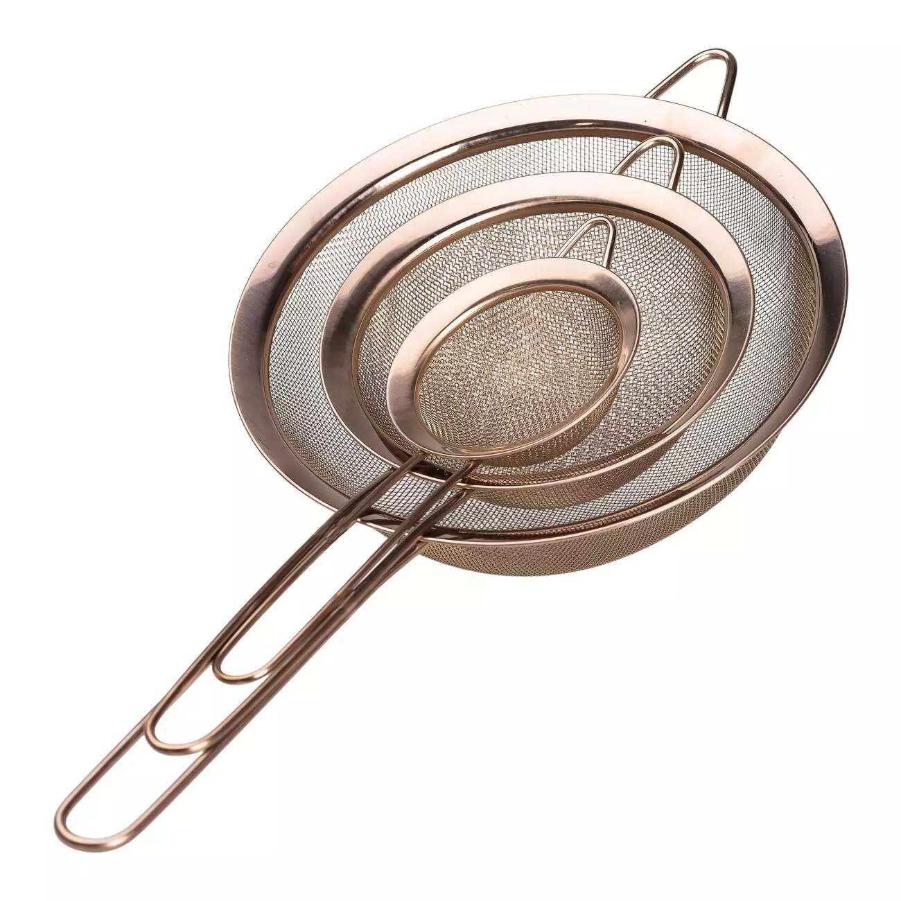 Для зручності використання кожне ситечко оснащене довгою ручкою і