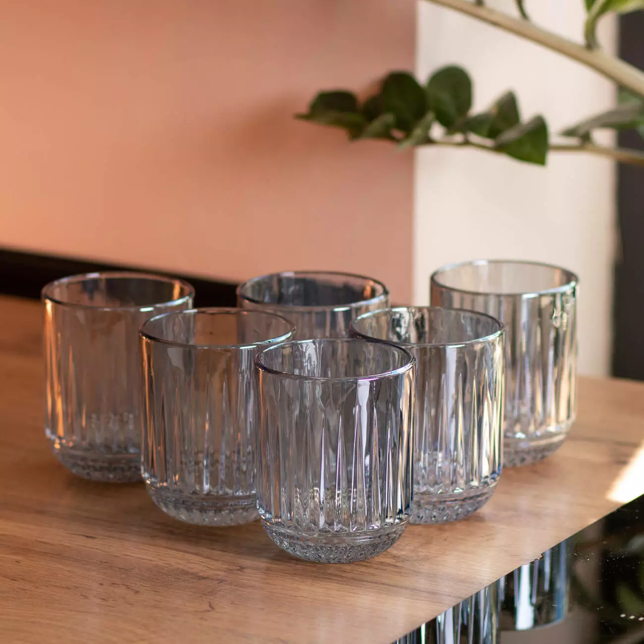Набір склянок із рельєфною поверхнею призначений для щоденного використання вдома, в офісі або в закладах харчування. Комплект містить 6 однакових склянок, виконаних із прозорого скла без додаткового оздоблення. Рельєфна фактура додає практичності під час утримання в руці.
