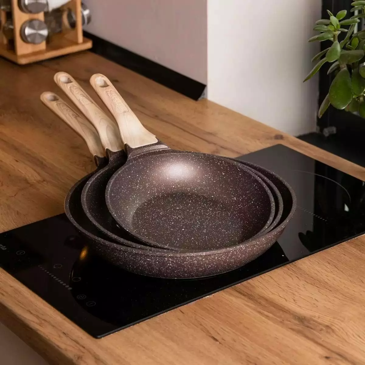 Набір сковорідок універсальних MGC алюмінієвих з антипригарним покриттям 1,2/2/3 л, кавовий