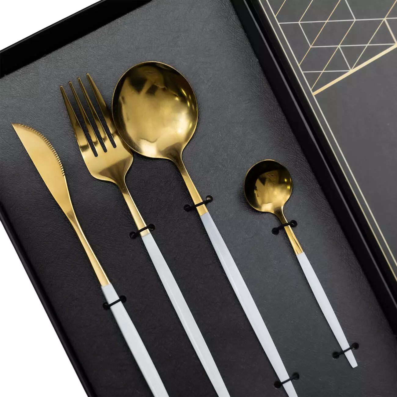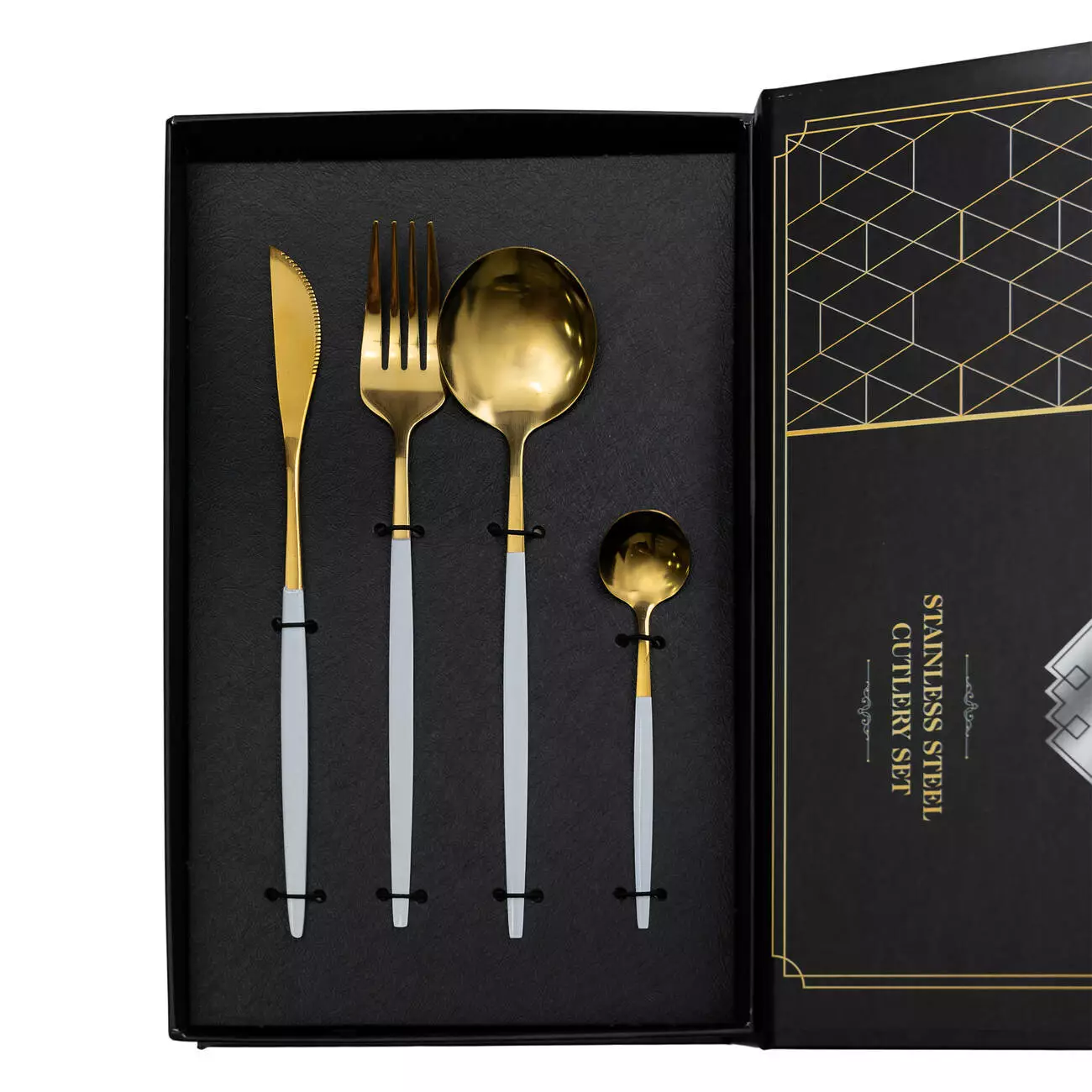 Набір включає 24 предмети, розраховані на 6 персон. До комплекту входять столові ложки, чайні ложки, столові виделки та ножі – по 6 штук кожного виду. Такий склад робить набір універсальним для повсякденного використання та сервірування святкового столу.