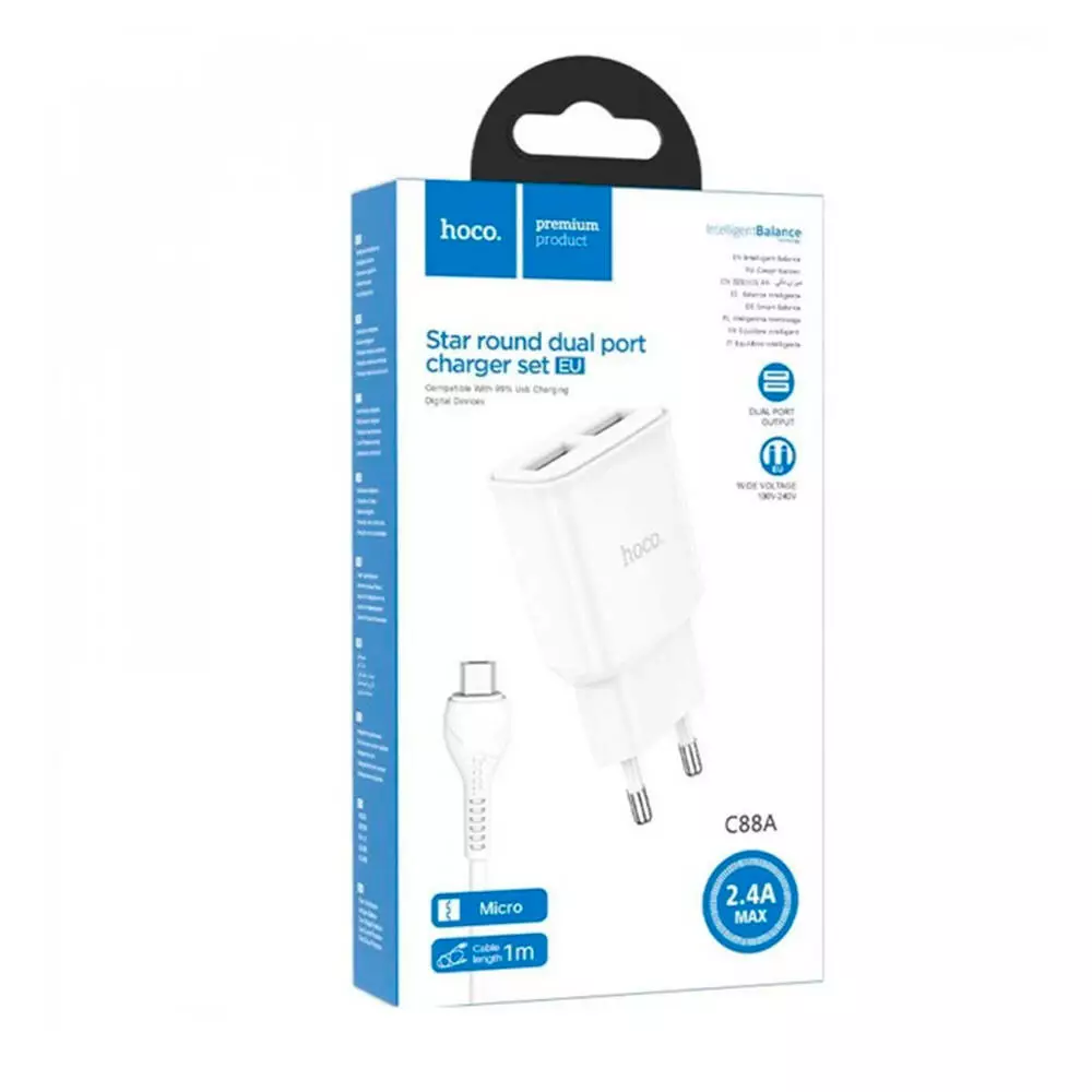 кабель Micro USB. СЗУ забезпечує вихідний струм до 2.4A кожному