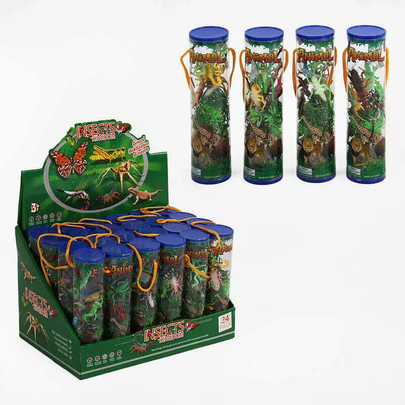 Набір тварин 893 (12/2) "Світ комах", кущі, каміння, тубус, ЦІНА ЗА 24 ШТУКИ В БЛОЦІ, в коробці