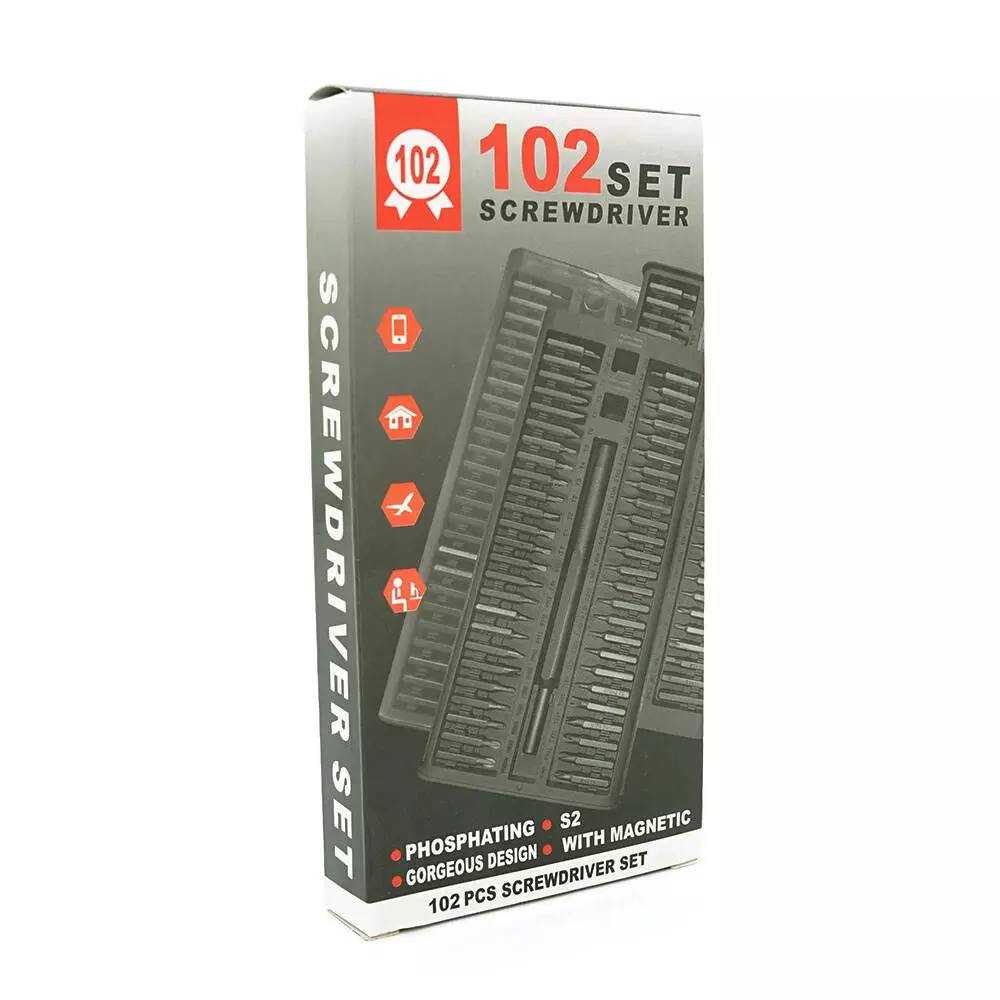Цей набір включає двосторонню викрутку з бітами 102-in-1. Тримач