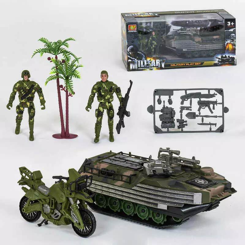 Набір військової техніки HW-S 3507 (24) 6 елементів, 2 солдати, танк з інерцією, мотоцикл, аксесуари, в коробці