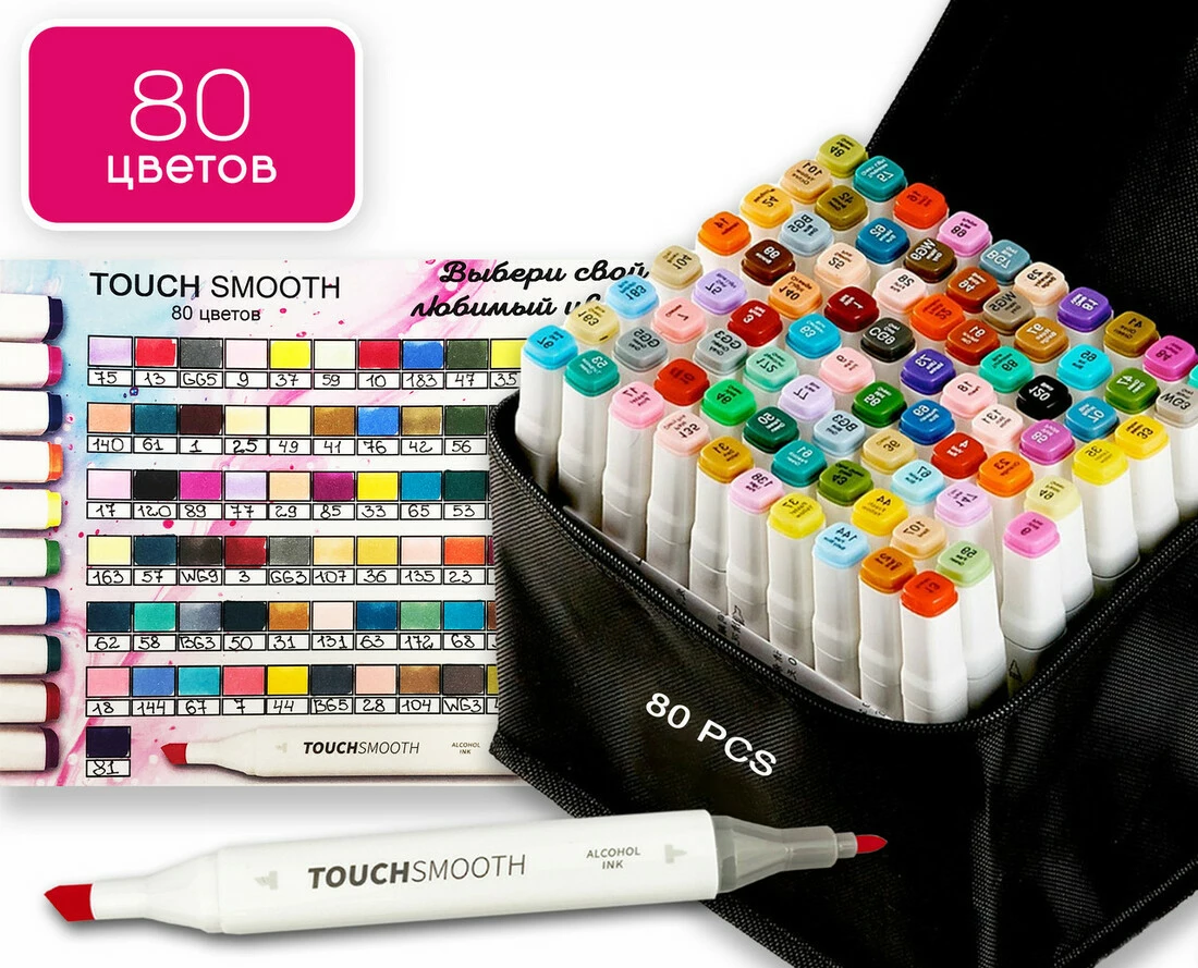 Набір якісних маркерів для скетчингу Touch Smooth 80 штук у чорній