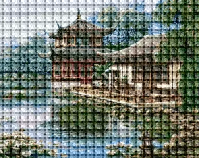 Набір з алмазною мозаїкою "Китайський будиночок" 40х50см