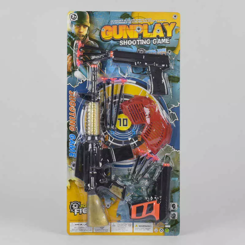Главная > Каталог > Игрушки > Игрушечное оружие > Військовий набір 809-11 /12/13 (84/2) 13 елементів, автомат, 2 пістолети, 9 патронів на присосці, окуляри, на листі оптом