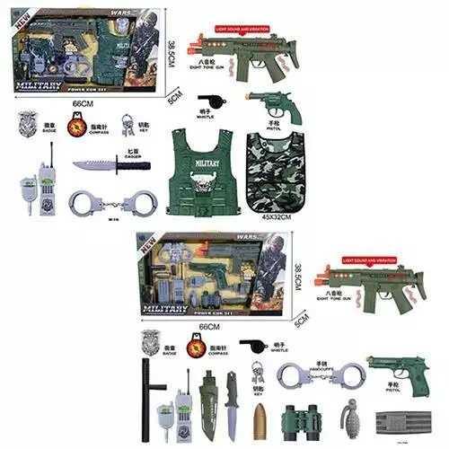 Фотография 1 товарной позиции интернет-магазина детских игрушек www.smarttoys.com.ua Набір зі зброєю JS001A-03 військовий, жилет 2шт., автомат, револьвер,рація,ніж,компас,кор.,67-39-5см
