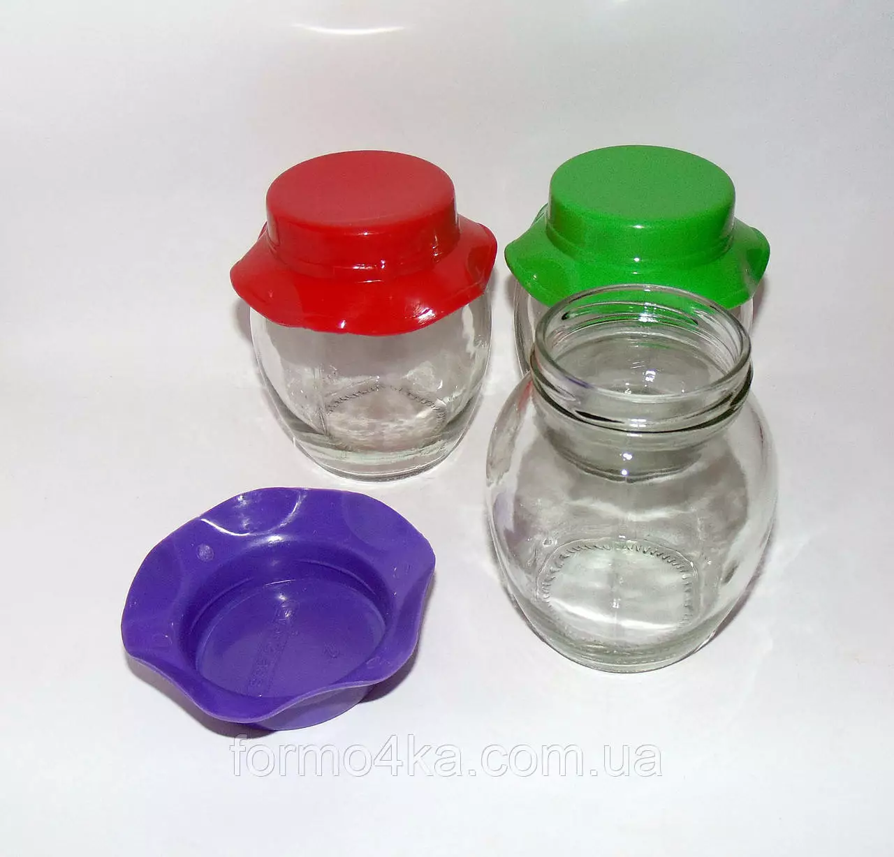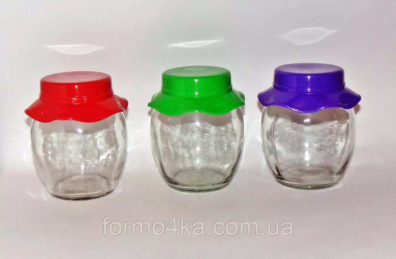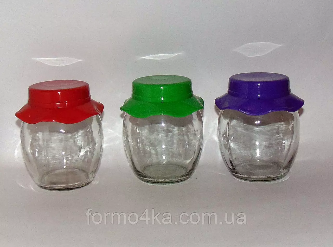 Банки стеклянные в форме бочонка с пластиковой крышкой в виде