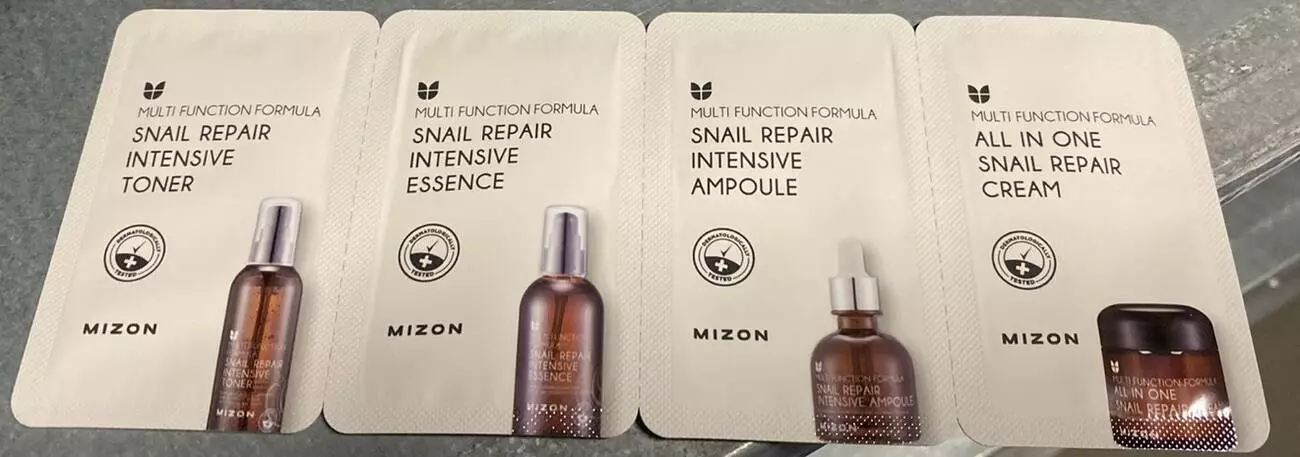 Набор супербестселлеров Mizon в формате сэмплов! Продукты серии Snail Repair — отличный вариант для комплексного увлажнения и восстановления кожи. Они созданы на основе муцина улитки, которая обеспечивает интенсивную регенерацию, способствует разглаживанию рубцов, устраняет пигментацию и раздражение, замедляет процесс старения.