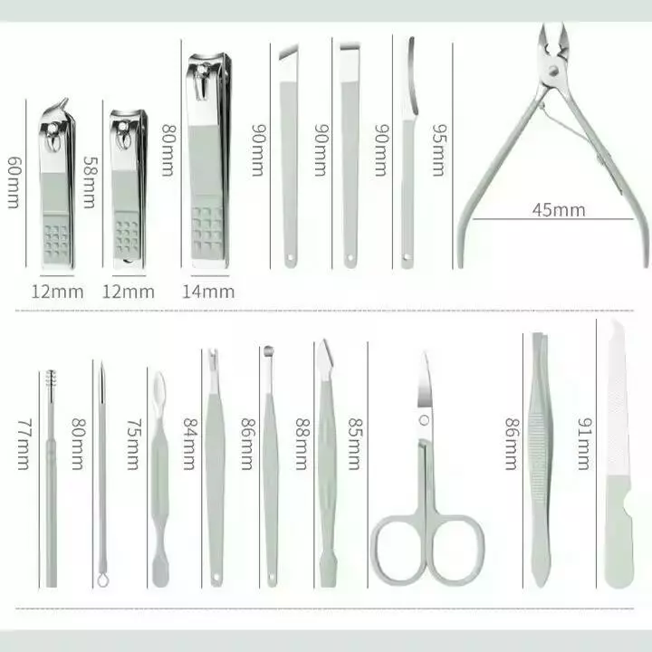 16 инструментов из нержавеющей стали для маникюра и педикюра.