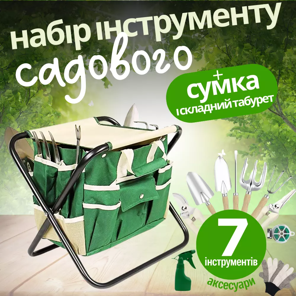 Універсальний набір садівника з сумкою-органайзером і складаним