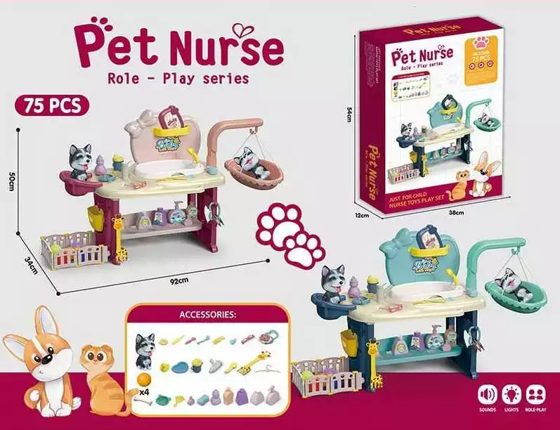 Набір для догляду за улюбленцями HL - 5 (12) 75 елементів, підсвічування, мелодії, фігурка собачки, в коробці