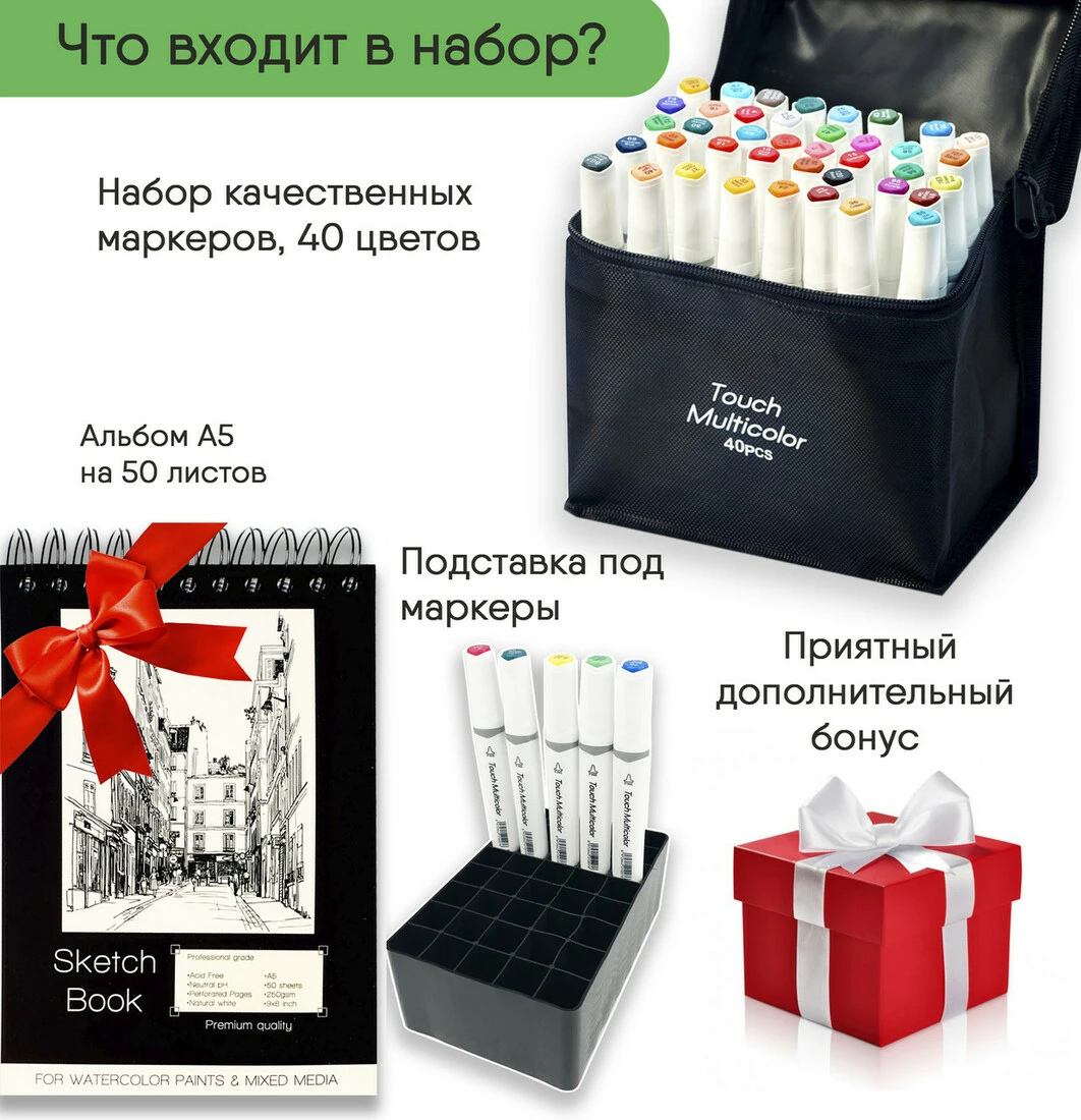 Вы покупаете Набор маркеров двусторонних Touch Multicolor 40 цветов