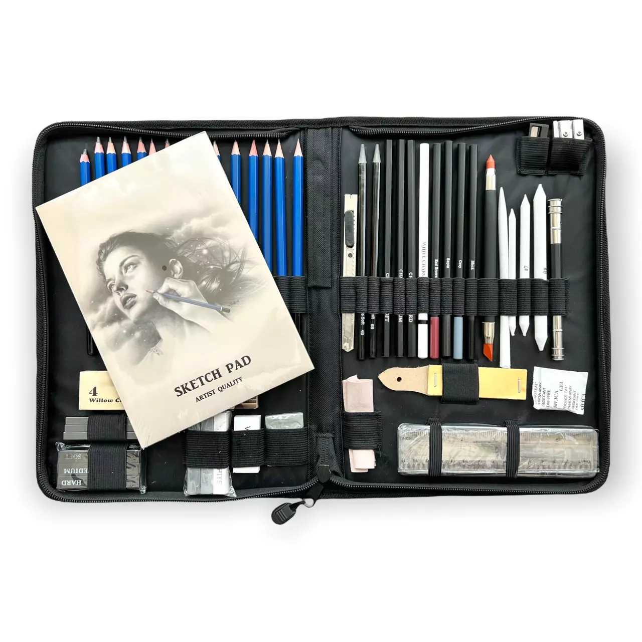 включая бумажную растушевку, пастельные, угольные и графитовые
