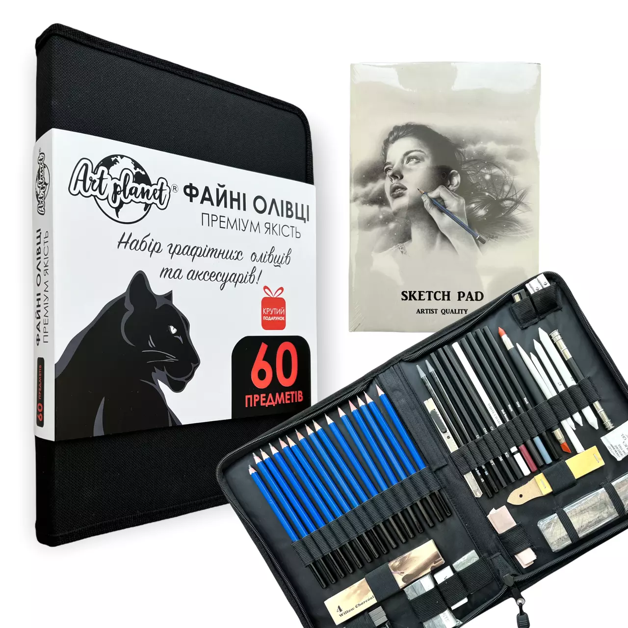 В профессиональном наборе для художника содержит 60 предметов,