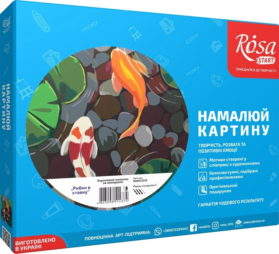 Стати справжнім художником легко завдяки наборам для творчості ROSA START! Процес створення картини дуже захоплюючий і легкий одночасно, адже малювати потрібно по пронумеровані схемою. Контури картини нанесені на полотно, області поділені на окремі сегменти з номерами, яким відповідає номер на баночці з фарбою. Поступово зафарбовуючи їх, Ви отримуєте готову картину! Разом з картинами за номерами ROSA START кожен, незалежно від віку, зможе самостійно писати картини і поступово розкрити в собі талант художника. Саме тому, перше, на що варто звернути увагу при виборі картини за номерами - це рівень складності. Картини за номерами ROSA START в подарунковій коробці мають чотири рівні складності, визначити які можна за допомогою відповідної позначки на етикетці. Склад набору: - полотно на підрамнику 35х45 см з контуром і нумерацією - якісна синтетична кисть ROSA START - 2шт - схема картини - набір акрилових фарб - кольорове зображення картини Набір виготовлений і укомплектований в Україні. Під пильною увагою фахівців він проходить всі життєві цикли, щоб потрапити до Вас в руки. Набори для творчості ROSA START - відмінний подарунок для дітей від 7 років, чоловіків і жінок будь-якого віку. Створюйте свої власні шедеври разом з наборами для творчості ROSA START !!!