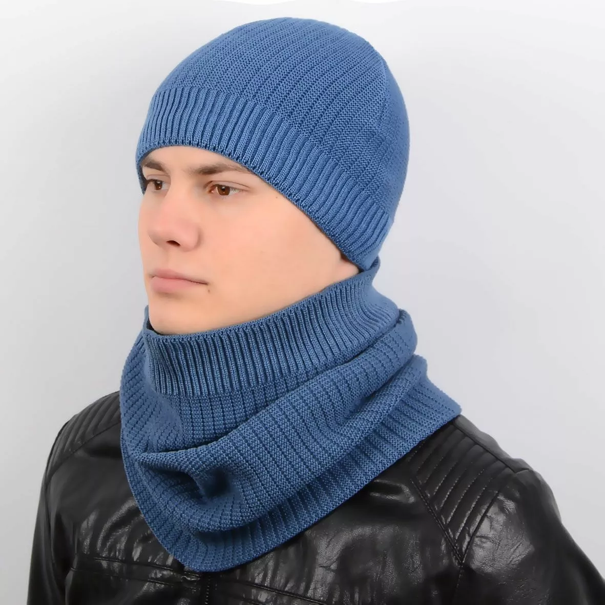 Стильный мужской набор - состоит из шарфа-хомута и теплой шапки.