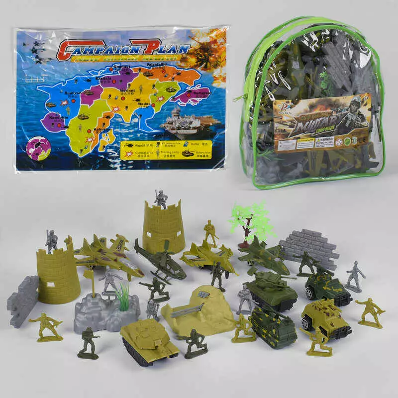 Комбат PD 9930 (96/2) 33 элемента, 3 танка, 2 внедорожника, 3 истребителя, вертолет, 16 солдат, карта, аксессуары, пвх сумка