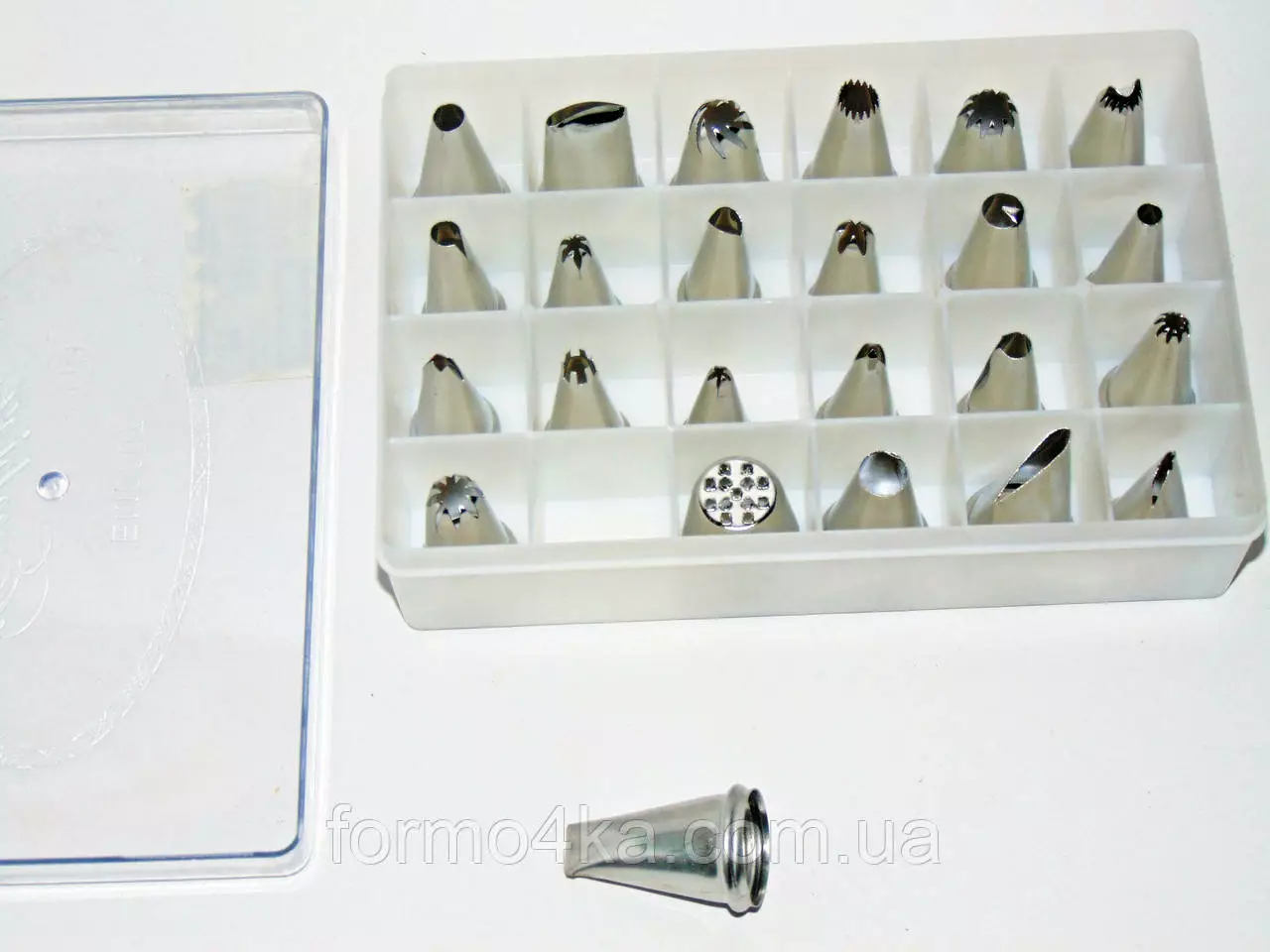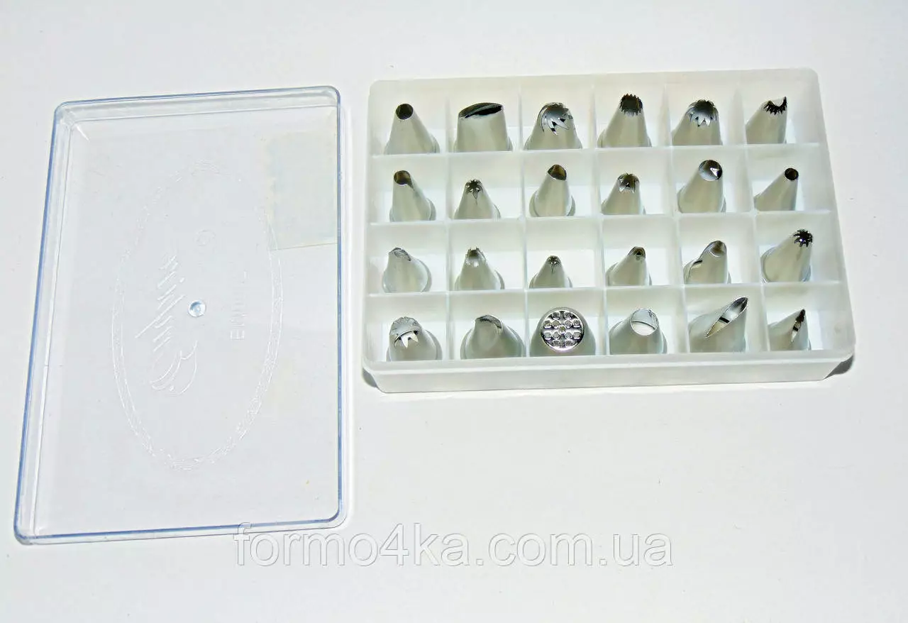 24 разных насадок из нержавеющей стали в пластиковой коробке с прозрачной крышкой