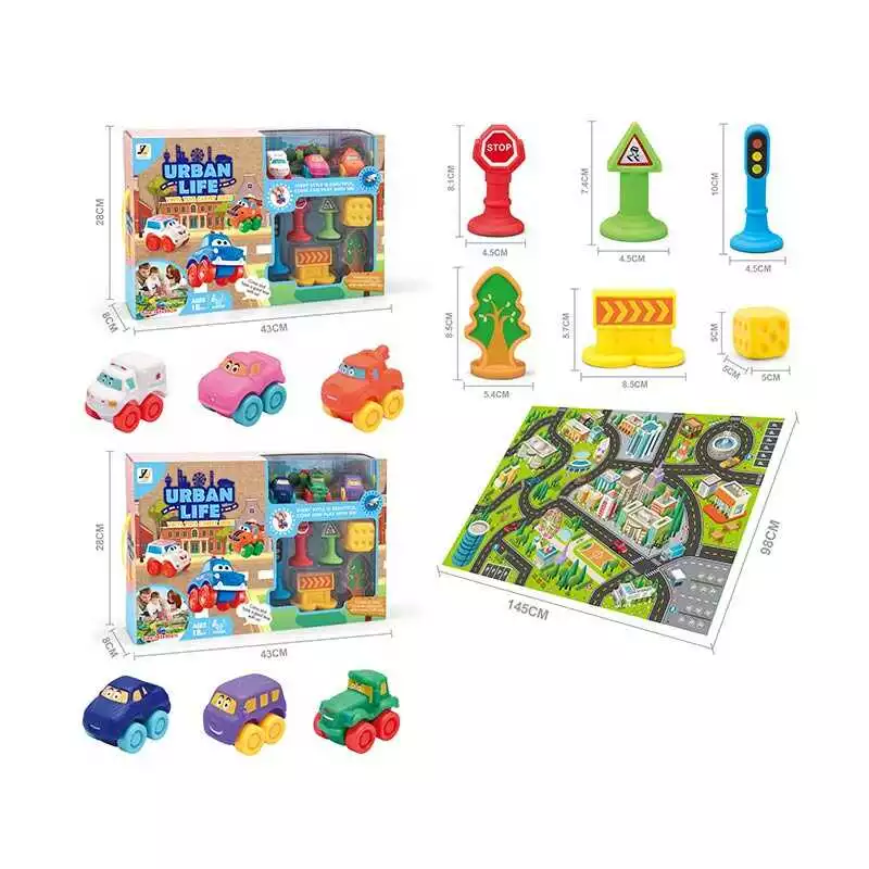 Главная > Каталог > Игрушки > Игрушечные машинки > Набор машин JZD - 117 (12) 2 вида, спецтехника, игровой коврик 145х98 см, 3 машинки, декорации, в коробке оптом