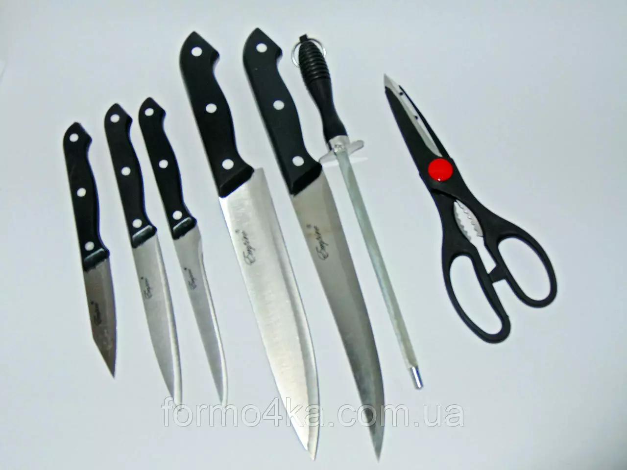 Ножи выполнены из нержавеющей стали с пластиковыми рукоятками