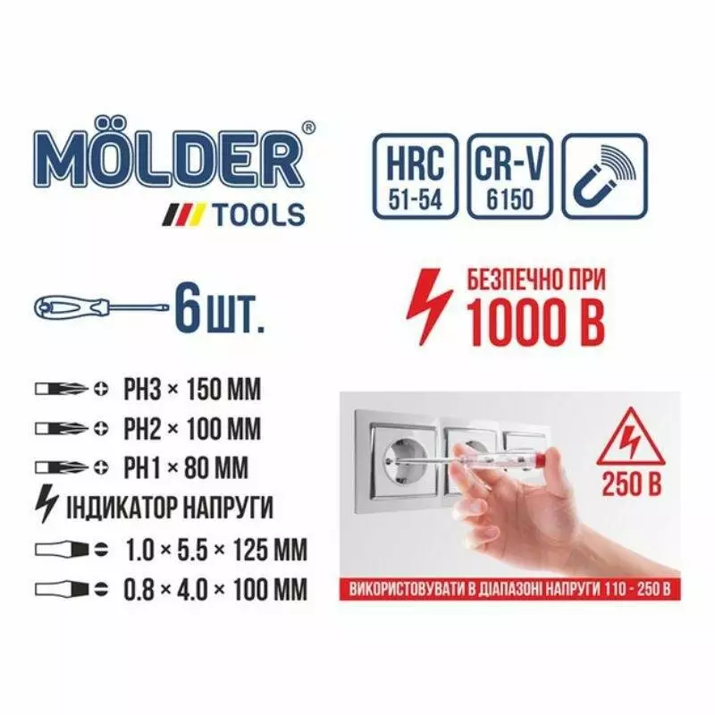 <p>Набор отверток диэлектрических Molder, VDE 1000 В