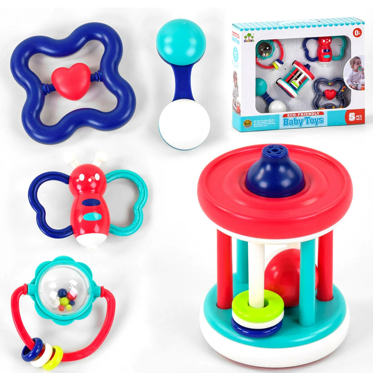 5-ти развивающих погремушек. Благодаря погремушкам малыш учится