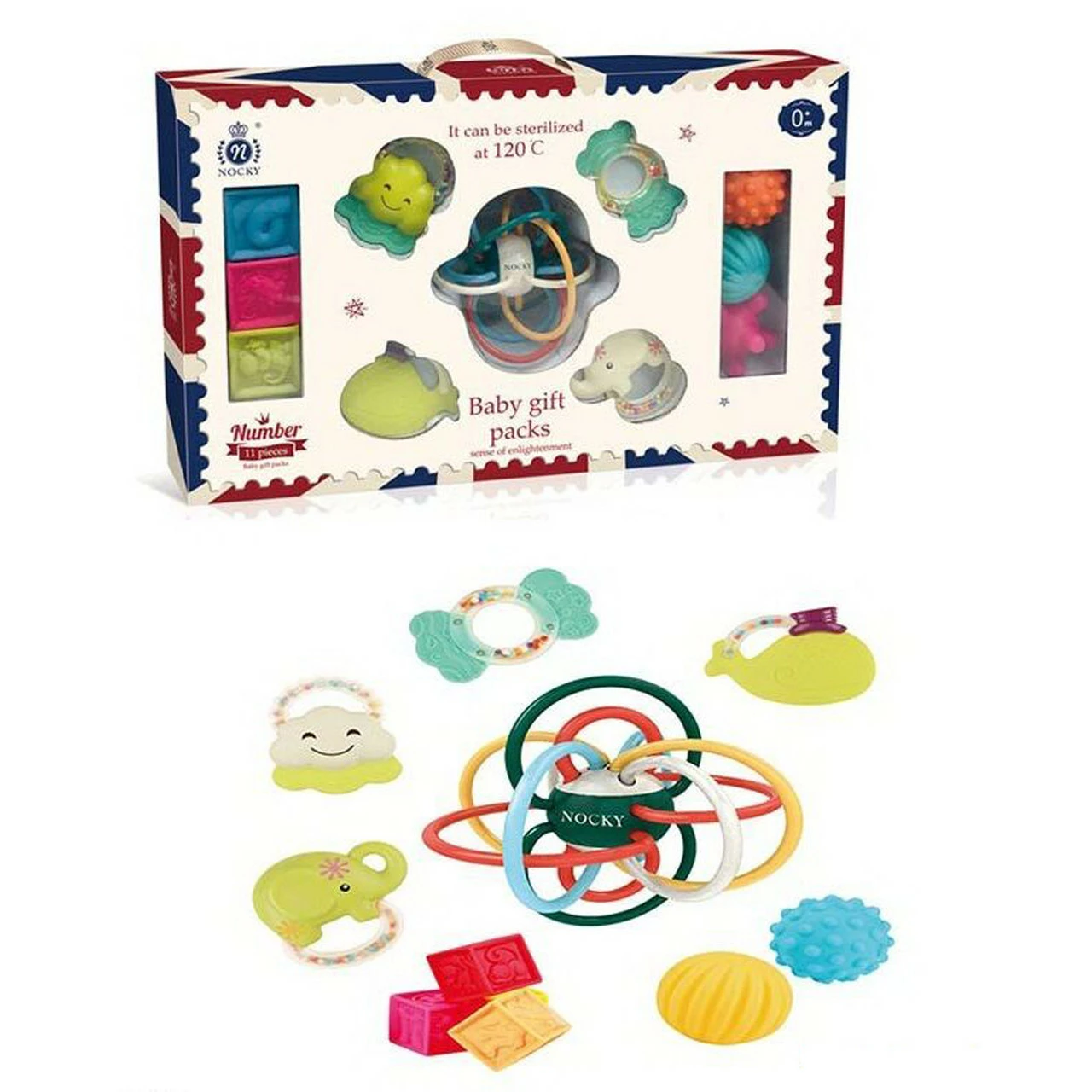 погремушка с резиновыми кольцами. Все игрушки в наборе оснащены