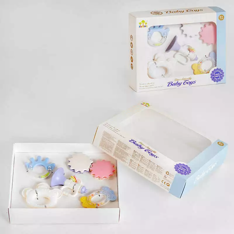 Набор погремушек SL 84816 (36/2) труба, два прорезывателя, шестеренки, бубенцы, в коробке