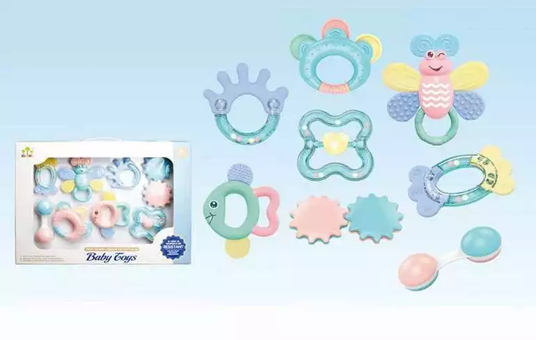 Набор погремушек SL 84824 (24/2)4 прорезывателя-погремушки, шестеренка, маракасы, в коробке