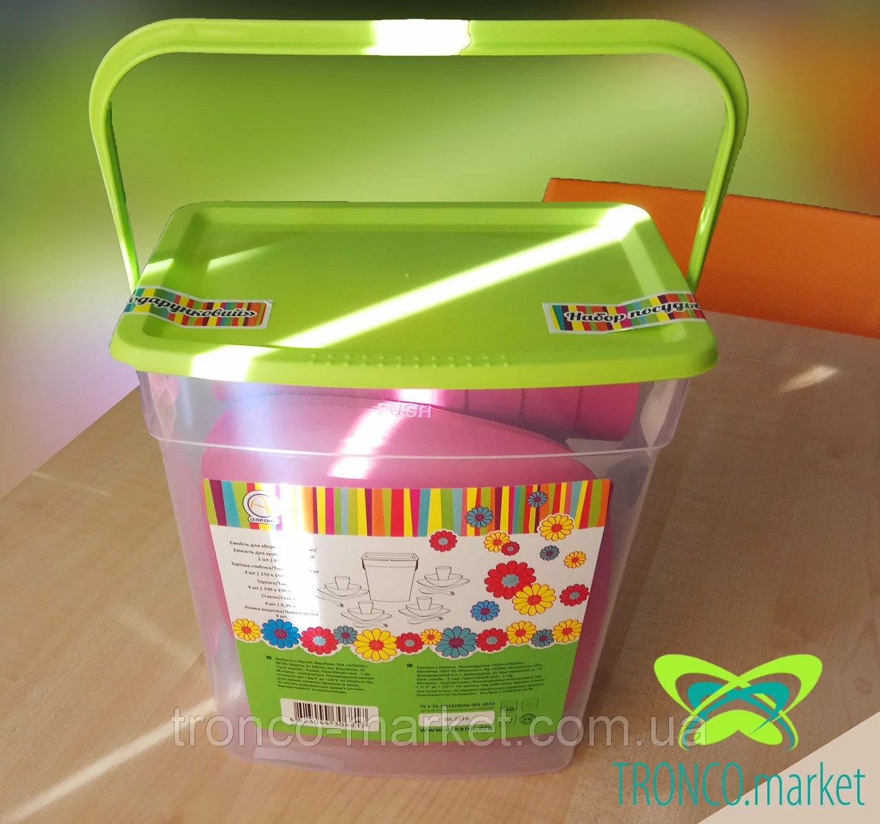 Набор посуды в контейнере с ручкой. Производитель Алеана, Украина.