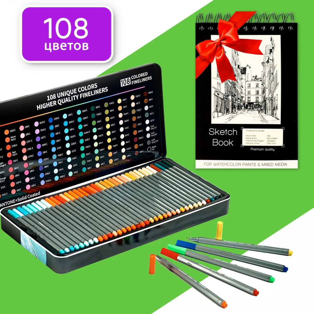 кейсе Fineliner 102 цветов 0.4 мм + Альбом для скетчинга А4 на 50