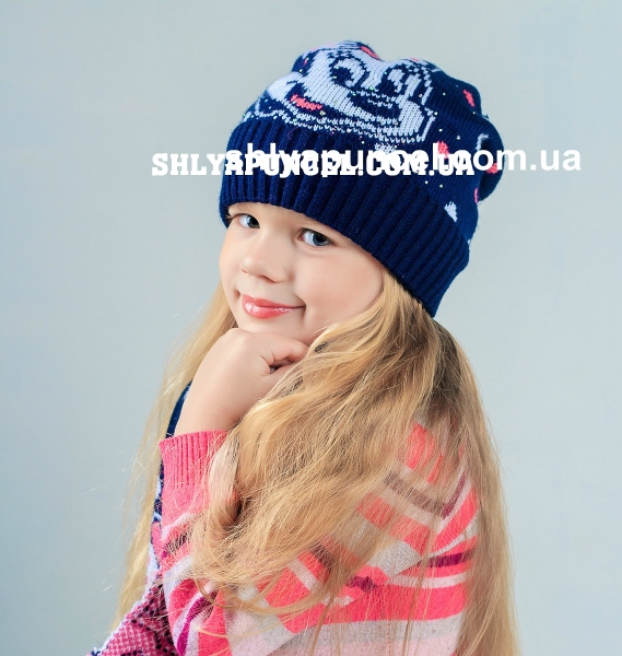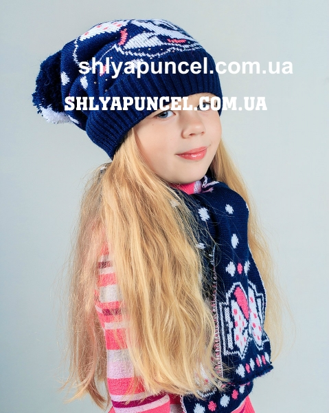 Очень теплая шапка с шикарними двумя бумбонами и рисунком