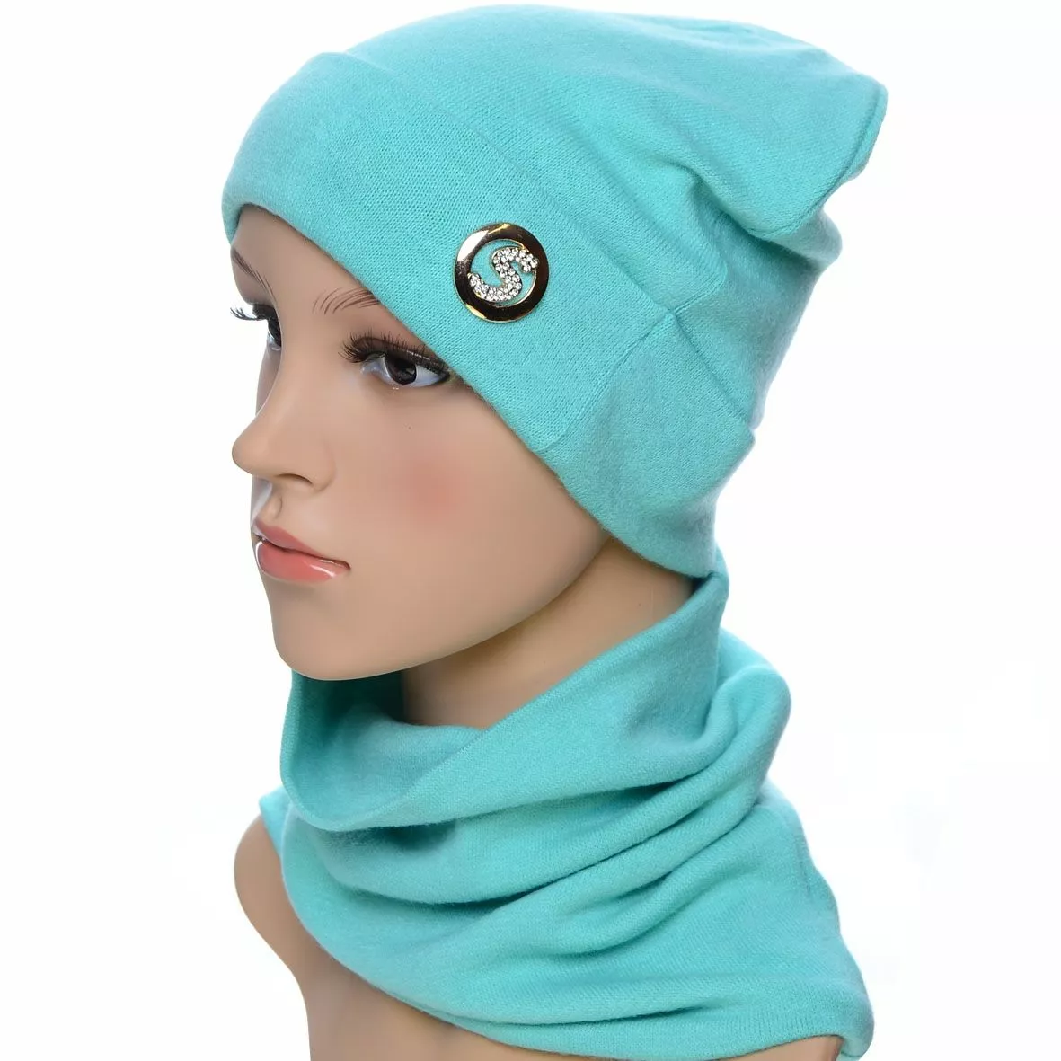 Трикотажный однотонный комплект для женщин, состоящий из шапки и