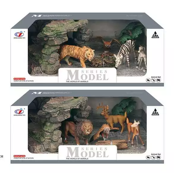 Набор животных Q 9899 Y-75 (12) "Дикие животные", 2 вида, 7 элементов, 4 фигурки животных, аксессуары, в коробке
