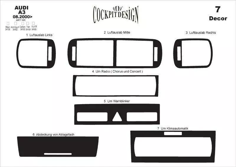 Накладки на панель (2000-2003) Титан для Ауди A3 рр