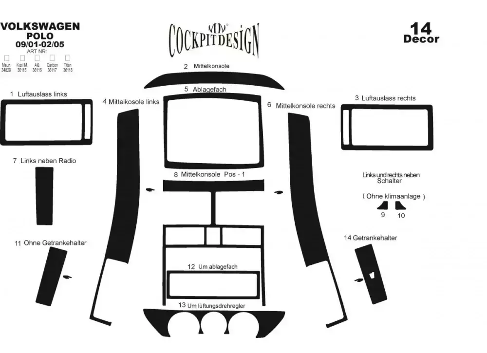 Накладки на панель (2001-2005) Дерево для Volkswagen Polo, Тюнинг