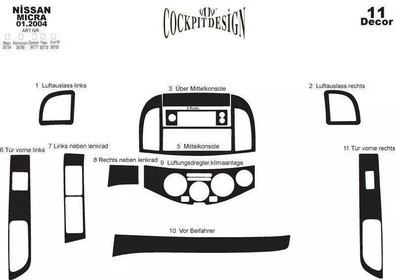 Накладки на панель Дерево для Nissan Micra K12 2003-2010 рр