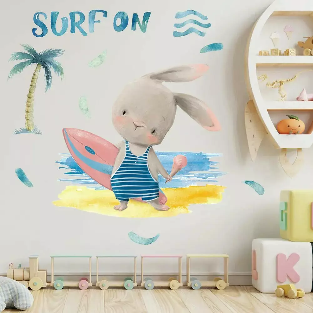 Наклейка вінілова «Зайчик серфінгіст» ідеально доповнить інтер'єр
