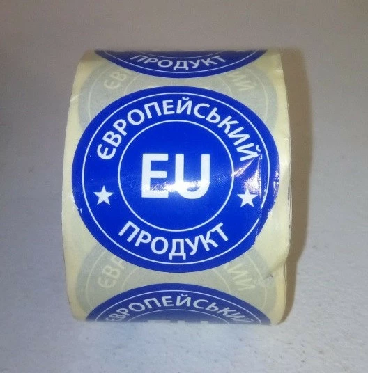 Наклейки "Європейський продукт" відмінної якості! Призначена для маркування різних товарів: продуктів харчування, алкоголю, побутової хімії, побутової техніки і т. д.
