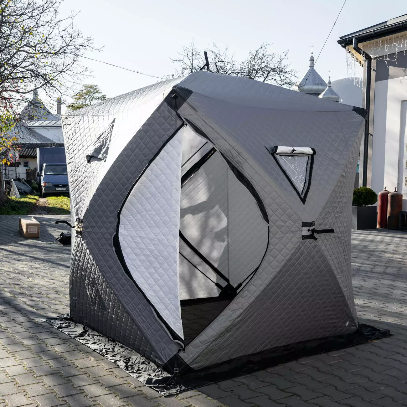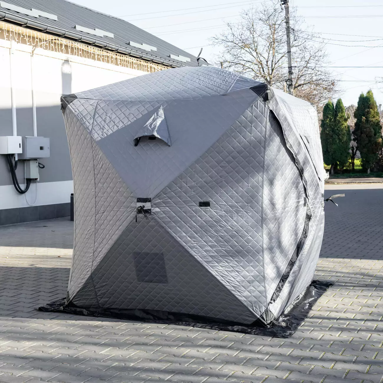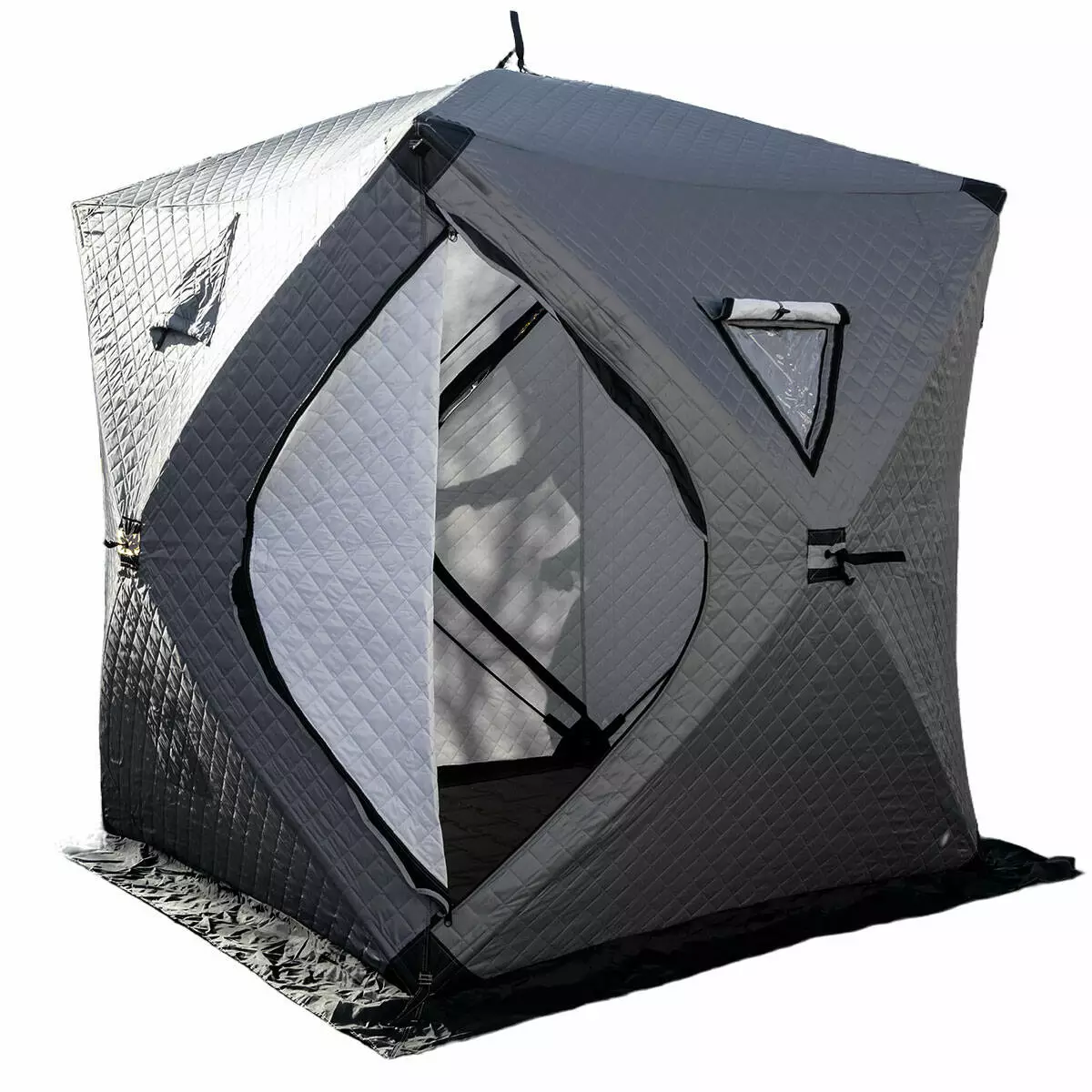 Тришаровий намет з автоматичним механізмом - надійне рішення для зимової риболовлі, кемпінгу та відпочинку в холодну пору року. Конструкція встановлюється за кілька секунд: достатньо потягнути за центральний вузол і каркас розправляється самостійно. На бічних стінках намету розташовані оглядові вікна з морозостійкого полімеру, які за потреби закриваються на липучки. Крім того, передбачені вентиляційні клапани, що забезпечують приплив свіжого повітря та відведення зайвої вологи при обігріві.